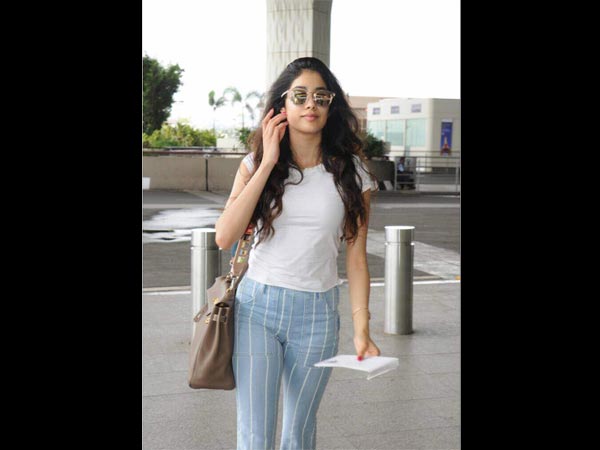 Jhanvi was seen walking in a cool white tee and a pair of striped blue trousers. We really love the travel wear and she looks like a diva in it.