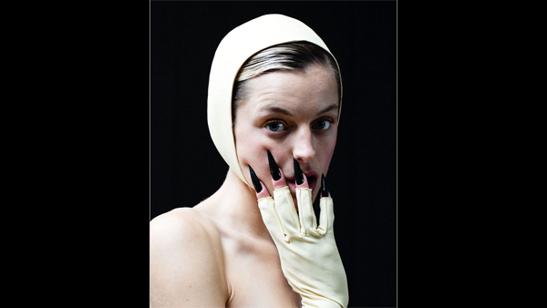 One may have myriad perspectives as to the gown but she described the look as 'Crucible Realness', which made the outfit so intriguing. Like the Pierrot Clown costume, this Emmy's 2021 gown of Emma Corrin was also designed by Miu Miu. Emma was styled by Harry Lambert and the fashion label described the gown as, "Emma Corrin wore a custom Miu Miu yellow satin sable column shape dress with a bonnet and gloves and a pair of yellow satin pump to the 73rd Annual Emmy's held on September 19th, 2021 in London." However, nothing about the inspiration behind this look was mentioned and there was a lot of prediction around. No, it wasn't a swim cap that Emma Corrin wore! A lot of critics and fashion enthusiasts compared the gown and look to June Osborne (played by Elisabeth Moss) in The Handmaid's Tale. Some felt the look was inspired by the dress sensibility of the Tudors' ladies during Henry VIII's reign as the King of England. Yes, the similarities could be drawn from both The Handmaid's Tale and Tudors' fashion but the statement black-painted nails by Simone (Simmy) Cummings added another perspective.