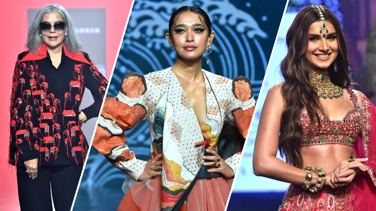Ace designers ensure to add their favorite showstopper to feature their latest collections at fashion events. At the ongoing fashion gala, famous Bollywood divas including veteran actress Zeenat Aman, Tara Sutaria, and Sayani Gupta walked the ramp featuring inspirational outfits!