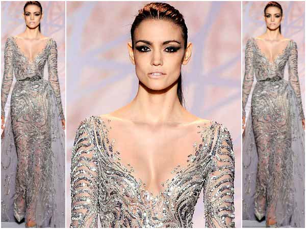 A shiny starry fitted inner bodice with a light sheer body gown gives it a futuristic aura and can be worn if you want to turn heads your way.