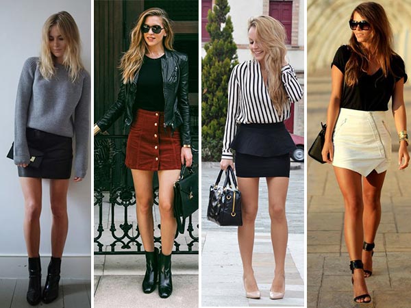 Asymmetrical mini skirts paired with denim or chiffon tops add sleekness to your appearance. These look good on petite women too. Pair them with nude platforms and hoop earrings.