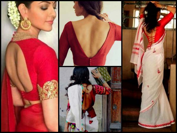 7. The Deep V Backline: Try out a simple but sexy blouse pattern like this one. You can even add tie-up string to keep the blouse on the shoulder. The thing is, if your blouse is too deep in the back, it will fall off the shoulder.