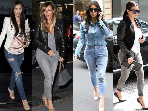 Kim Kardashian Gets All Covered! Learn 17 Ways To Style Your Basic Skinny Jeans From Kim Kardashian