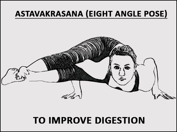 Astavakrasana is one yoga asana which helps to improve digestion. The word Astavakrasana comes from the Sanskrit word 'Asta' which means eight, 'Vakra' which means curved or bent and 'Asana' which means pose.