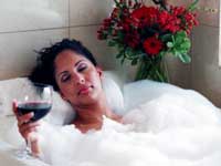 3.To set your mood listen to your favorite music by Setting up an ipod with speakers in the bathroom. One with a remote control.