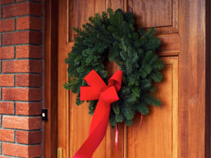 1. Wreath Decoration: The typical Christmas wreaths of green fir and some red ribbon bows set just the right festive mood for your Christmas home decoration. Nail one large wreath on to your door and it looks elegant. If you want to cover a large space then you can make patterns or shapes ('V' for example) with smaller ones.