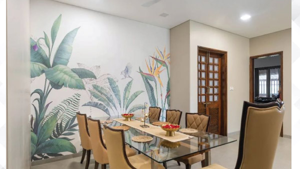 Add a fun element to your dining room with vibrant patterns, colours and textures. Wallpaper has the ability to change the room's ambience by making a style statement. An interesting wallpaper can immediately spark a conversation between the guests. You can experiment your style with a variety of options from botanical, floral, geometric or abstract patterns. Everyday family meals to occasional dinner parties can be made special with the added pattern and pop of colour that wallpapers provide.
