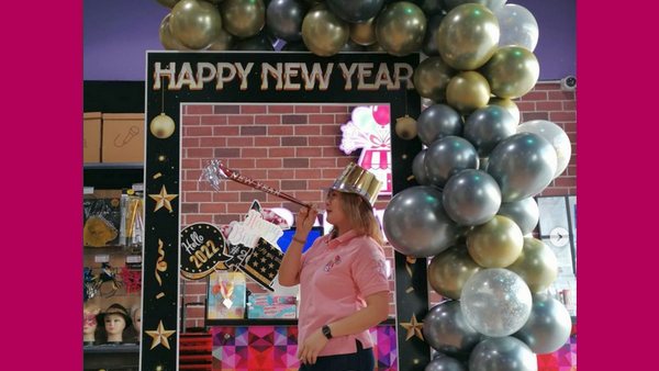 Design a quirky photo booth or selfie point by creating a cardboard frame. Adorn the frame with miniature cut-outs of champagne glasses, cakes, and balloons. Keep witty one-liner placards near the booth so that people can click a picture with them. You can even lend a pair of sunglasses to people for clicking pictures. It will give a sassy vibe to the party.
