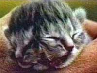 The kitten, which was one of the three which its mother littered was delivered by surgery when the mother cat faced complications at its birth.