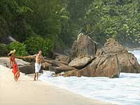 The Resort covers an expanse of 69 hectares (170 acres), including just 67 villas and suites, steeply descending down a jungle hillside to the horseshoe-shaped bay of Petite Anse. Black granite boulders line the powder-white beach in bold contrast to the azure-blue sea.