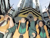 When you travel in this unique pleasure giant, it plunges down at 112 degrees before twisting through a series of tight turns. It puts riders through "4g" - a similar g-force to that experienced by fighter pilots.