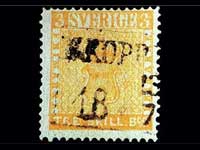 This is a Swedish stamp which exists only because a boy rescued it from his grandmothers dust bin. This stamp dates back to the year 1855 and was used in 1857. This was the only stamp which was painted yellow by mistake. It was supposed to be green in colour. This difference made it a special stamp.
