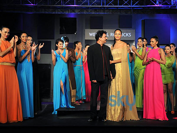 Wendell Rodricks is seen with the models who walked for his line on the day 1 of Blenders Pride Fashion, 2013. The designer looked stunning in a black suit.