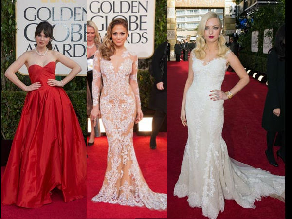 The 70th Golden Globe Awards 2013 in the Beverly Hilton at Beverly Hills, United Sates was full of glitz and glamour. Celebrities were seen walking the red carpet in different outfits, colours and designs. The dazzling celebrities wowed us with their looks. From dark colours like burgundy to champagne, from lace to metallic, we saw it all at the red carpet of the Golden Globe Awards 2013.
