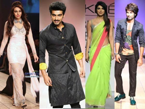 As expected, Manish Malhotra's show was too starry! Priyanka Chopra, Asha Bhosle, Kariashma Kapoor, Kajol, Hema Malini, Siddharth Malhotra, Anurag Kashyap, Dibakar Banerjee, Zoya Akhtar and Varun Dhawan walked the ramp for Manish Malhotra. Cutie Parineeti Chopra walked the ramp for designer, Masaba Gupta. Kareena Kapoor, the brand ambassador of Lakme is walking the ramp on the finale of Lakme Fashion Week Summer Resort. Bebo is going to showcase designer Namrata Joshipura's collection. Shahid Kapoor and Arjun Kapoor on the other side walked the ramp for designer Kunal Rawal. However, Day 4 was more starry than expected. Many celebrities walked the ramp for Vikram Phadnis Swades show. Take a look at the celebrities at Lakme Fashion Week, 2013.