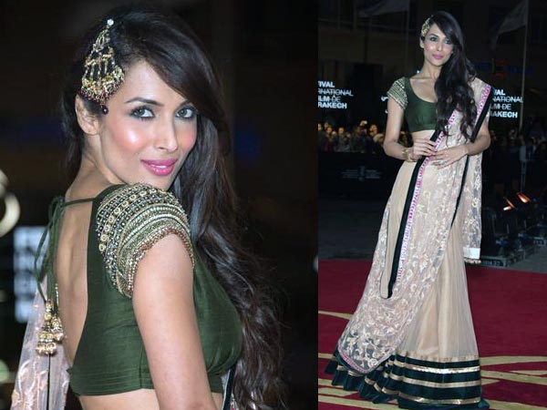 Malika Arora Khan has a figure to die for. That is why she has chosen a seductive lehenga that has a deeply cut choli. She wore this Manish Malhotra creation for Marrakech Film Festival 2012.