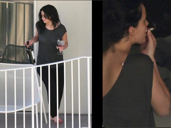 At her hotel balcony in Hawaii, Jennifer Lawrence was smoking as well as drinking red wine.