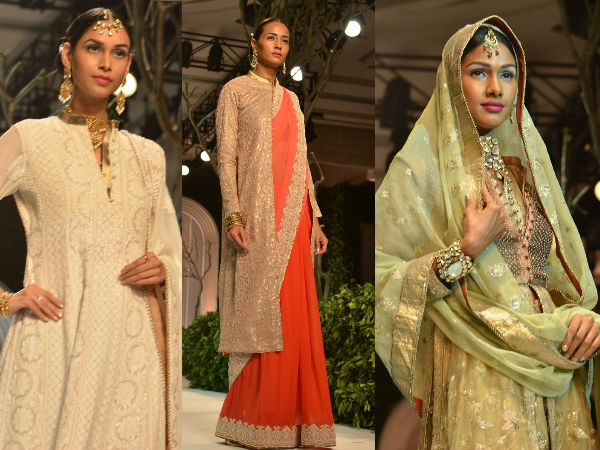 Intricate chikan, zardozi work on Georgette and velvet fabrics were seen on the ramp. Long embroidered jackets with sarees and lehengas added a contemporary look to the collection.