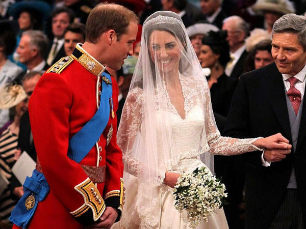 Prince William and Kate Middleton exchange secret glances with each other through the bridal veil.