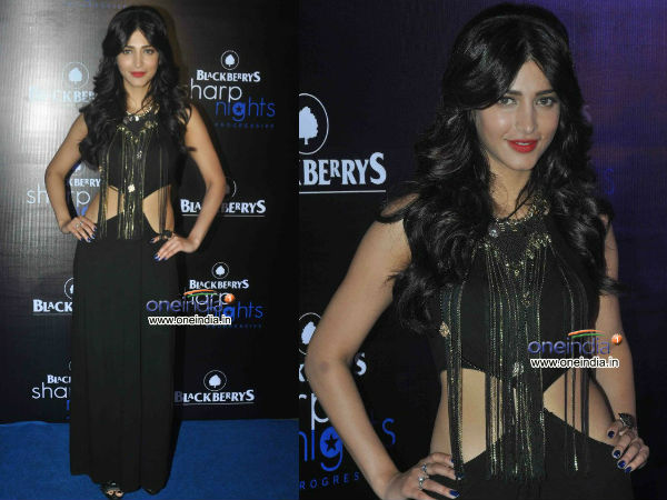 Black seems to be Shruti Hassan's favourite colour. That is why like other events, Shruti wore black even at Blackberry Sharp Nights. Be it red carpet for an award function or for a fashion show, Shruti loves to wear black. However, this black Forever 21 black maxi didn't impress us. What do you think?