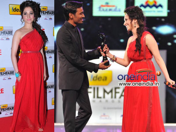 The Filmfare South Awards 2013 was a huge event on the social calendar. The Southern stars put on there best for the Filmfare South Awards 2013. And how could superstar Tamannah miss the opportunity! She was quite sizzling in a single shoulder red gown. Tamannah's gown was from Neeta Lulla's couture.