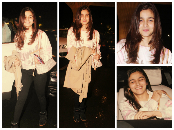 Alia Bhatt has been out of the promotions scene for quite some time after her movie 'Humpty Sharma Ki Dulhania' released. The young actress was seen in the travelling mode when she was snapped at the airport. She looked good without makeup. Alia Bhatt was in a t-shirt from River Island and black leggings. She looked casually smart in this ensemble.