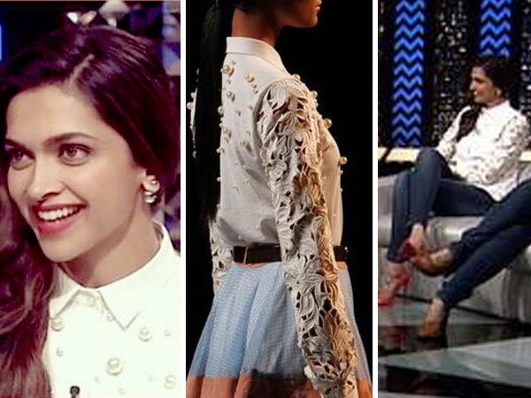 The beautiful Deepika Padukone stole the limelight on The Front Row with Anupama Chopra. She looked stunning as she was dressed in a white shirt and blue jeans by designer Archana Rao from her collection Frou Frou. Bollywood beauty Deepika Padukone knows how to make heads turn as she looked simply stunning in this outfit.