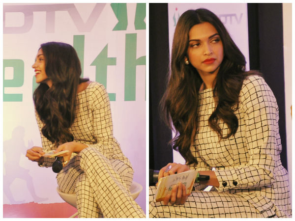 Deepika Padukone knows how to get attention! The beauty who is happy about her movie promotions cant stop smiling. At one of her recent events, she stunned us all when she wore a linear printed pant suit that was mesmerising. The event she attended in full poise was the launch of the NDTV and Fortis Healthcare4U campaign.