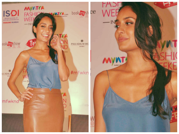 Keeping it simple at the Myntra event, Lisa Haydon went all natural. No makeup defined her looks and she was indeed looking fabulous on the stage. Her hairstyle was a bit messy, but cute!
