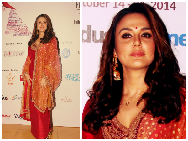 Preity Zinta looked very attractive in a Sabyasachi kurta at the recent Mumbai Film Festival 2014. There were many celebrities from Bollywood who attended this festival and none can beat the stunning deep dimple beauty, Preity.