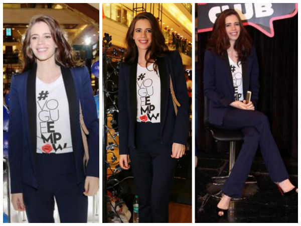 Kalki Koechlin at the Vogue event wore an all-blue attire. The actress has gone all-same-colour many a times before. This time around, the all-blue outfit with a white t-shirt on the inside wasn't any different. It made her look gorgeous to say the least.