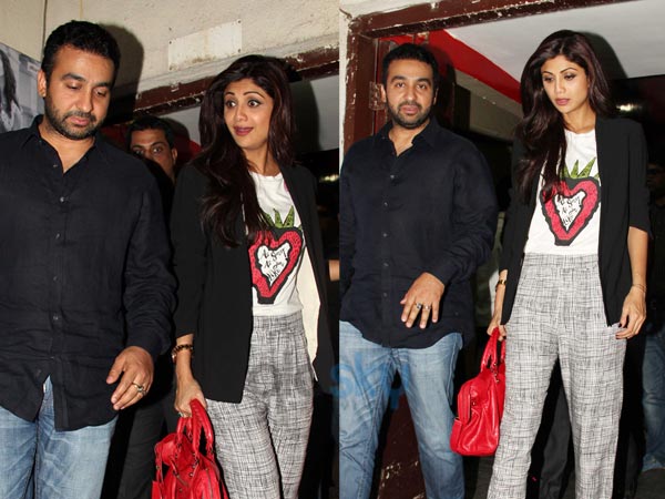 Shilpa was spotted with her husband Raj Kudra at the PVR cinemas.
