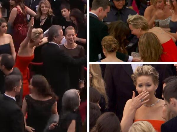 Jennifer Lawrence Trips At The 2014 Oscars