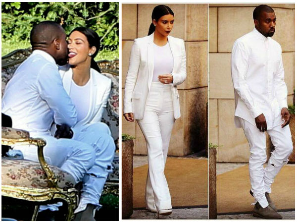 On the other hand, hubby Kanye West looked dapper in a full white buttoned long sleeve shirt and white ripped pants. The rapper finished his look with a clean shave and grey sneakers!
