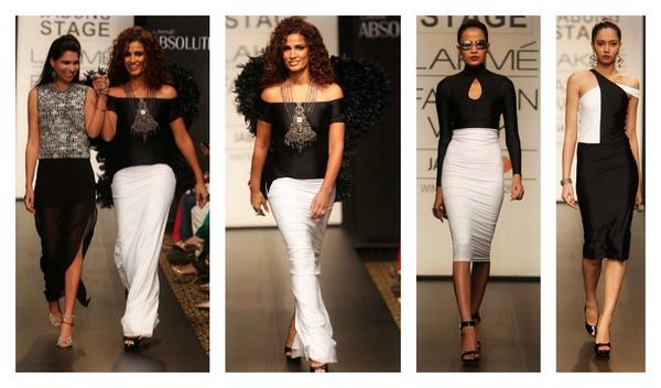 19:02:45 | Smart monochromes with a splash of lilac, blush & gold in @FarahS1986's collections at @JabongIndia Stage #lakmefashionweek #boldskylfw14 |