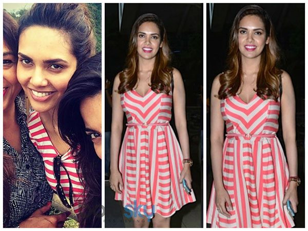 Though it has nix embroidery, the striped pattern creates a vivid imagination for those who are in love with this design. This short dress above the knees shows off Esha's slender legs thus making us gape in silence. Esha went in for minimal makeup so that the striped Oasis dress can get all the attention!