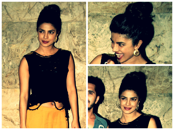 A pair of black Louboutins completed the ensemble to perfection. But what we liked most about this look was Priyanka Chopra's top knot. We have rarely seen the former Miss World try out the typical beauty queen top knot. In fact, this hairstyle really suits her.