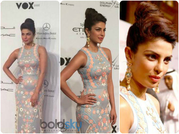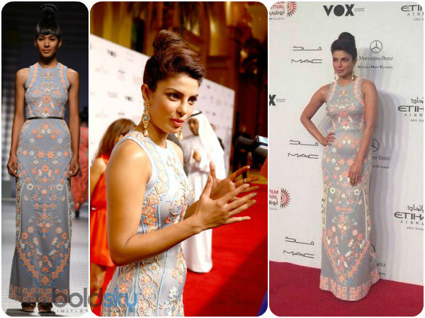Priyanka Chopra's Pankaj and Nidhi gown was very appealing and we couldn't take our eyes off her. Boldsky is glad that she picked the designer's Spring 2015 collection. She graced the Abu Dhabi Film Festival red carpet with her good looks and poise.