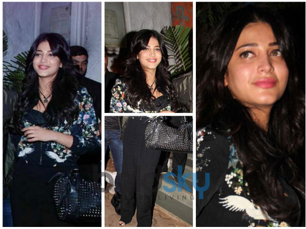 Shruti Haasan was recently spotted hanging out with celebrities from tinseltown. She looked stunning as ever. When we last saw this beauty, we were mesmerised with her stunning black look in an Amit Aggarwal gown at the VHI Sound Nation Awards 2014.