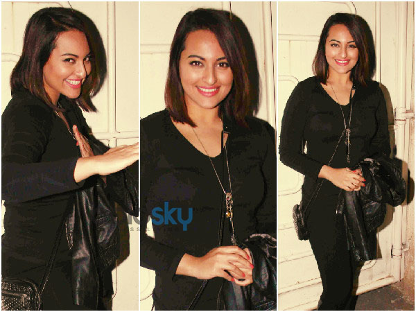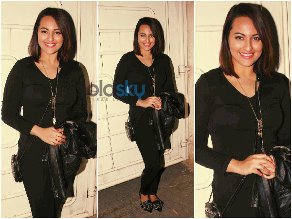 Looks like the colour black is an all time favourite in Bollywood. After Aishwarya Rai was seen in the gucci short black dress, the other celebrity who surprised us on the same day is none other than Sonakshi Sinha. Looking very cute in a full head to toe black number, Ms Sinha was an eye popper.