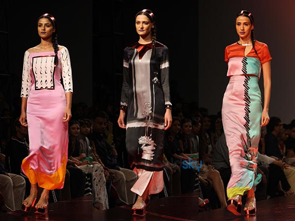 Masaba for Satya Paul's autumn winter 14-15 collection is named Icarus and consisted of silhouettes which a woman would crave to have in her wardrobe. Unstitched sarees are their popular outfits however, wearable, pre-stitched sarees were seen on the ramp.