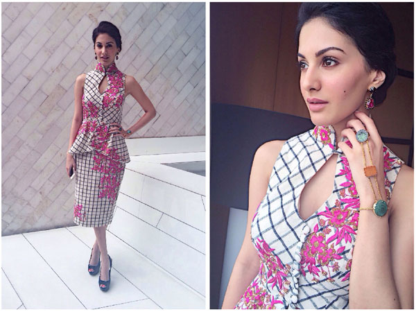 Amyra Dastur is wearing the dress by Shilpa Reddy from her collection 'Floral Geometry'. The dress was first showcased in New York.