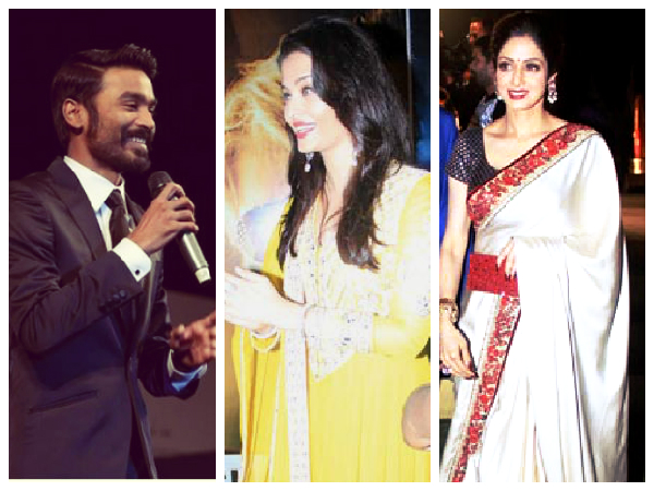 Dhanush kept it formal in a black one-piece suit which was worn with a plain white shirt and a matching tie. His thick and curved moustache looked impressive and very pathani style!