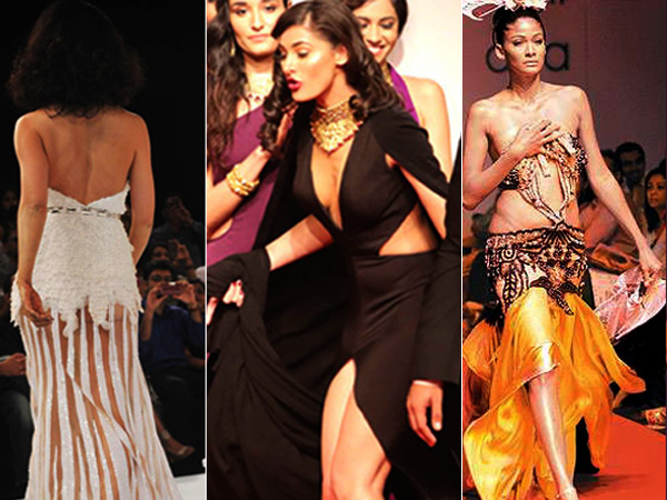 The miniscule outfit on Kangana was bound to show more than expected. Kangana faced an uncertain wardrobe malfunction on the ramp when she was the showstopper for Gavin Minuel. The see through dress was impeccable in the front but the dangerously high hemline at the back gave the photographers a view to remember.
