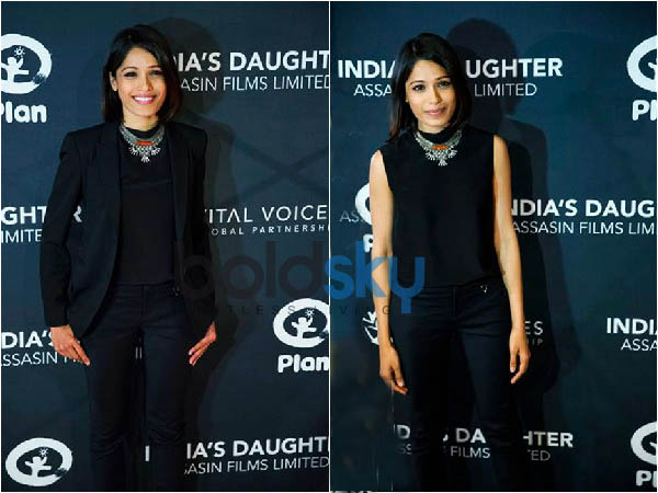 At the NYC screening of the BBC documentary India's Daughter, Freida Pinto went in for a black waist coat to give in that official style. It threw out a better look to her shining straight cut pant and turtle neck top. She accentuated her Gucci separates with nude low pumps which indeed was a perfect opt to go with such a shade.
