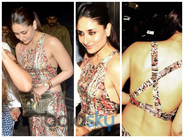 Kareena Kapoor was having the time of her life at the Zoya Akhtar Party recently with a couple of other Bollywood beauties who also attended. Kareena Kapoor looked fine in a snake printed long backless gown and she set a lot of tongues hanging. One look at Mrs Khan and you will surely smoke up in thin air.