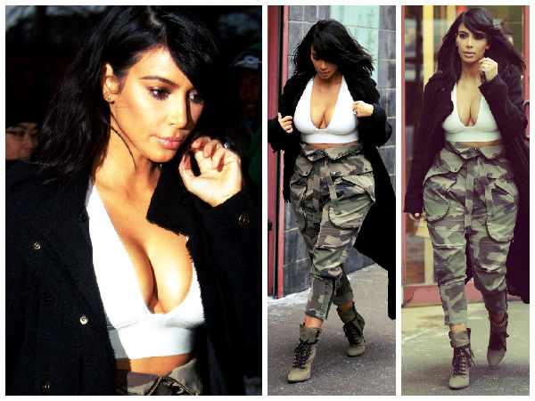 She flaunted her toned tummy in it and also paired it up perfectly with army trousers. This very appealing style of Kim's was completed with a pair of suede ankle boots she loves the most and a long fur black coat. Kim Kardashian also loved the attention she got from her fans who were shocked to see her in an outfit so revealing despite the weather conditions. Her heavy bosom was out on display and she made sure to get all the attention in her sans bra look.