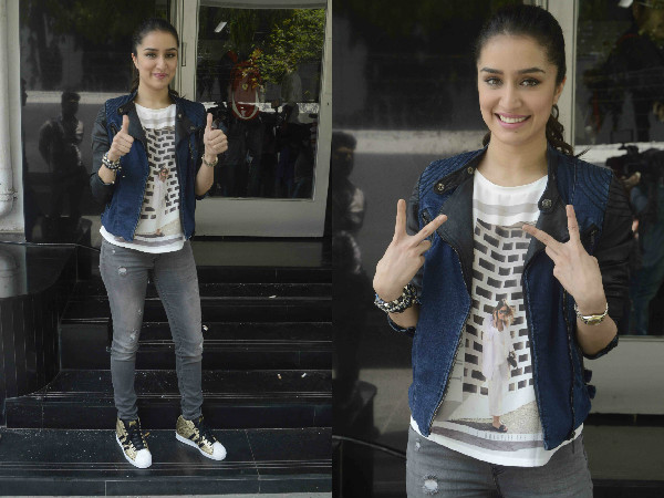 In this casual look Shraddha Kapoor was there with her co-star Varun Dhawan promoting their upcoming movie 'ABCD 2'.
