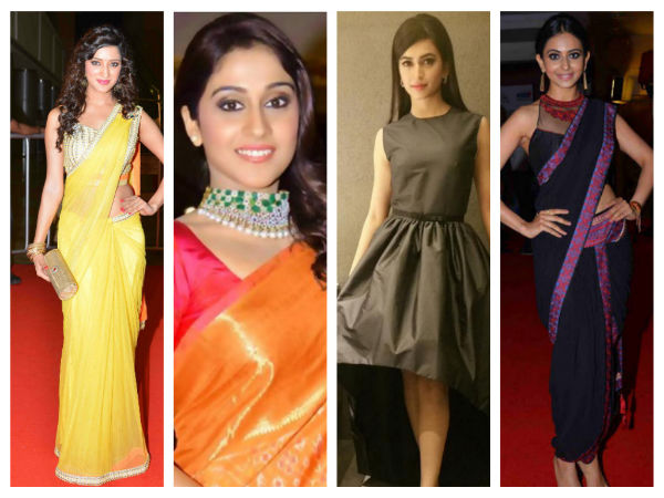Rakul Preet, Regina and Shipa Reddy were the best dressed on the carpet. They wore bright coloured designer outfits which captivated our hearts in an instant. Richa and Kriti too stole the show with their mesmerising looks and sensual appeal at the CineMAA Awards 2015.