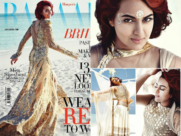 Sonakshi Sinha is here once again with another magazine cover looking gorgeous wearing Gaurav Gupta in the cover girl shoot of Bazaar Bride June-July 2015 issue.